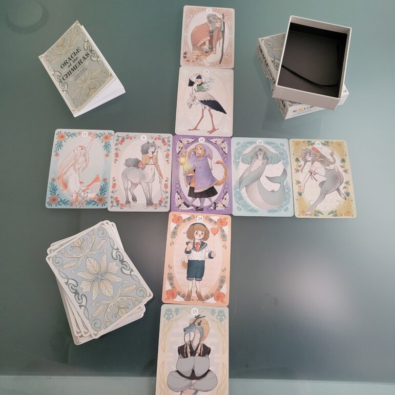 Estas quimeras son un recordatorio de lo que podemos llegar a ser si descubrimos nuestras mejores cualidades para trabajar en ellas, enriquecer nuestras vidas y ser una nueva versión de nosotros mismos. Huelga decir que estoy completamente enamorado de esta baraja, las instrucciones, el arte y la tirada incluida en la guía.
