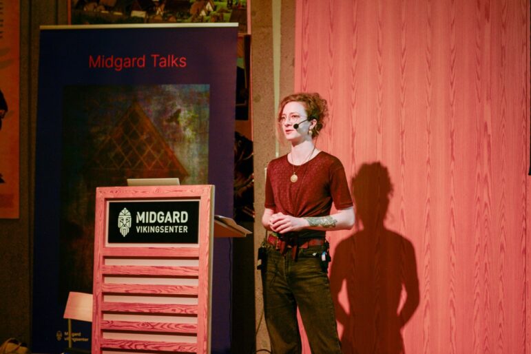 Charlotte Wenke presenting at Midgard Talks 2025. Photo by Linnea Nordström.