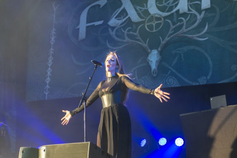 The next band on the big stage was the German outfit Faun. Emblematic of the popularity of medieval and golk inspired rock in (mostly the German-speaking parts of) Europe, Faun might not have been the heaviest band to ever have played at Midgardsblot, but they completely delivered nonetheless. Anchored by a variety of folk instruments (hurdy-gurdy, bagpipe, mandolin, nyckelharpa, etc…), Faun’s music features catchy melodies, anthemic singing (both male and female) and plenty of folksy, witchy, and Pagan-y elements.