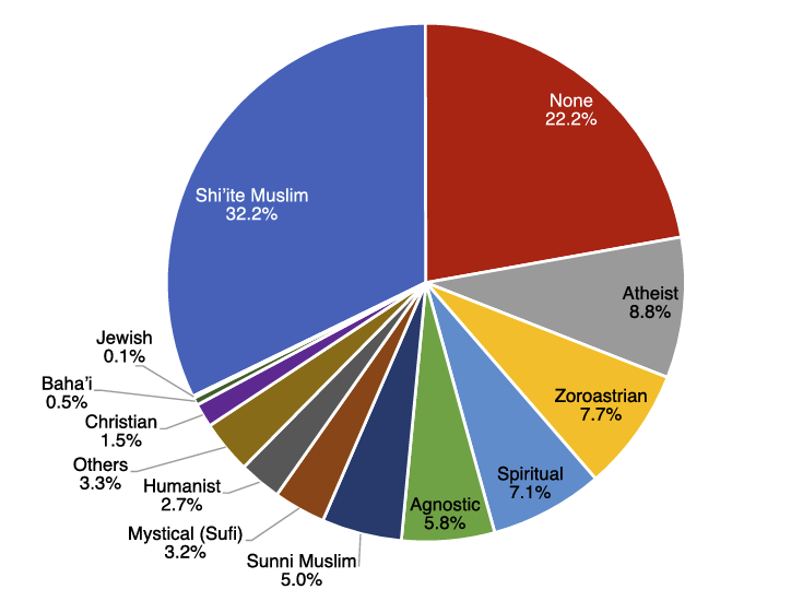 While the GAMAAN poll does not have much to say on the topic, and relevant research remains extremely limited, Mitra believes that a significant share of Iranians reject Islam by reconnecting to pre-Islamic myth, culture, and practices. She especially stresses the popularity of ancient Iranian seasonal feasts.
