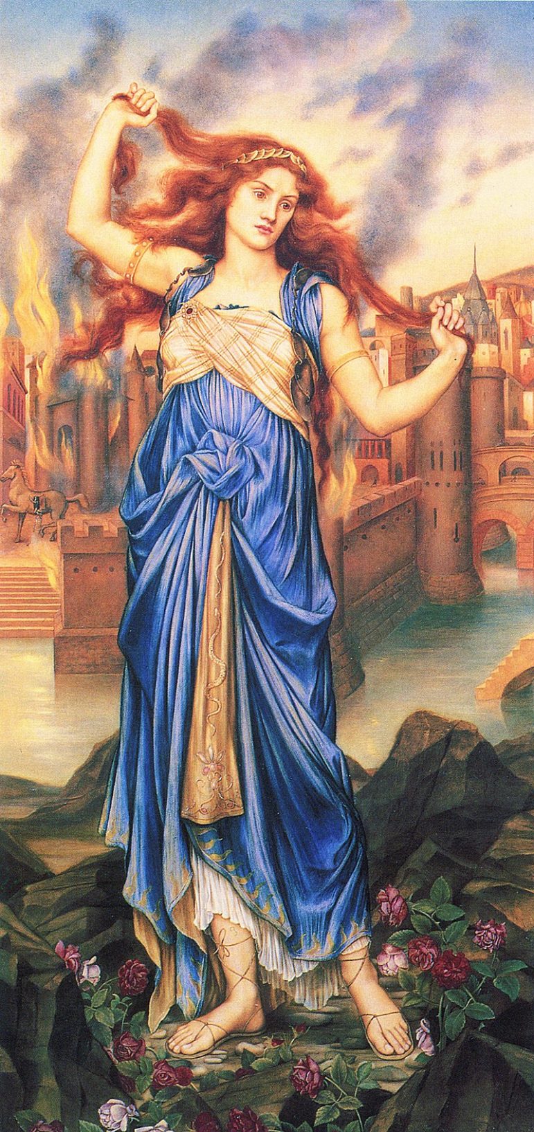 Cassandra by Evelyn De Morgan (1898, London); Cassandra in front of the burning city of Troy