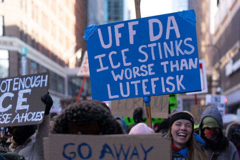 A sign at the Minnesota General Strike on January 23, 2026 [Flickr, Lorie Shaull, CC 2.0]