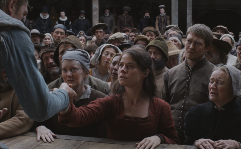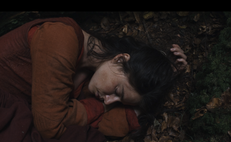 This captivating focus continues in the following scenes: Agnes is shown gathering herbs, making salve out of them and, on several occasions, reciting the Nine herb charms. We also soon learn about her now deceased mother, as she puts it, a “forest-witch” who, one day just emerged from the forest to seduce, mate with, and marry a local farmer. In one of the movie’s earliest flashback scenes, we even see this witch-mother teach Agnes about herb lore. Later, when Shakespeare, the son of a glover, offers her a new falconry mitt he crafted himself, we also learn that it was Agnes’ mother who taught her daughter to communicate with her feathery friends.