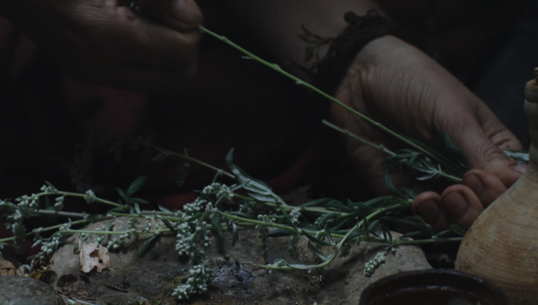 Preparing the Nine herbs charm (Screen caption. © Focus Features / Universal Pictures)