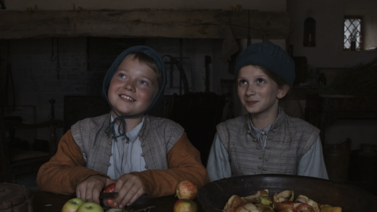 Following scenes of domestic bliss introduce the children, Susanna (Bodhi Rae Breathnach), and the twin siblings Judith (Olivia Lynes) and Hamnet (Jacobi Jupe) who all radiate life, love and happiness, a happiness that will sadly soon come to an abrupt end. Beyond the bitter separation with William, seeking glory, coin, and fulfillment in a depressingly dreary London, the ever present deathbed prophecy brings a sense of tension all throughout the otherwise beautiful scenes of a tightly-knit family.