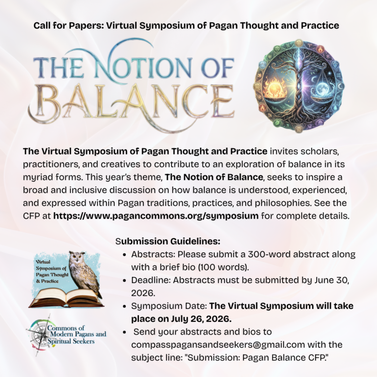 The Commons of Modern Pagans and Spiritual Seekers (COMPASS) is pleased to share an exciting opportunity with the broader Pagan community: the 2026 Virtual Symposium of Pagan Thought & Practice, taking place July 26, 2026, via Zoom.