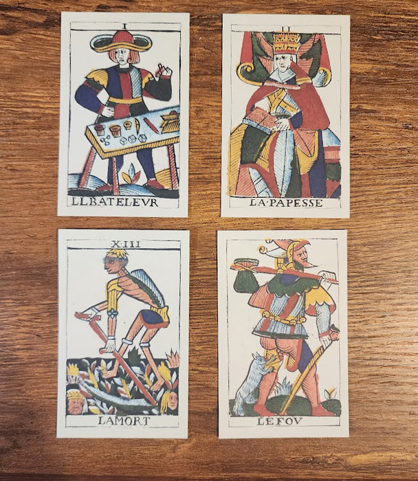 The physical deck itself is a faithful reproduction of the Tarot de Marseille. The cards are uncoated, sharply cut, and visually raw. They lack the gloss and polish of many contemporary decks, instead conveying a sense of archival authenticity. Some practitioners may question their durability for frequent divinatory use. Yet this very material quality reinforces the set’s scholarly orientation: the cards feel like artifacts for contemplation as much as tools for cartomancy.
