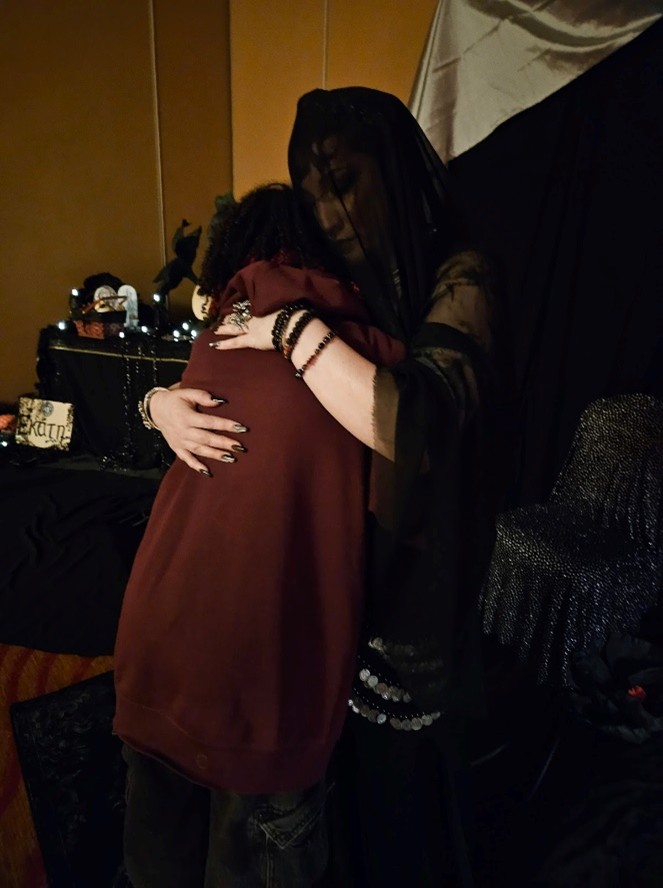 I then went to meet Aphrodite. I wasn’t as nervous to meet her because I had become friends with her vessel, Alisha, earlier that day. She was Alisha, but she wasn’t. Her voice was a bit deeper to start. Alisha is very upbeat and bubbly, but Aphrodite is calmer and more grounded. I think she recognized me, but I’m not sure. I told her how I had started working with her recently and had gotten a pink ring that made me think of her. I asked if she could bless it, which she did, and then put it back on my finger. My mom and I got a picture with her, both of us crying. And I got a hug, too. Aphrodite is pure love; she just radiates love. That’s the only way I can think to describe it.